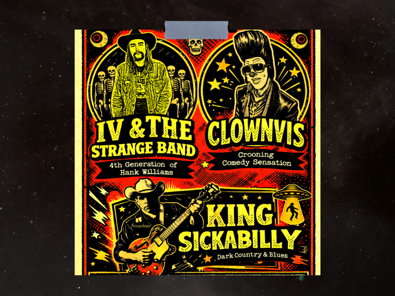 IV & the Strange Band bring their gritty, genre-bending sound to the stage with support from Clownvis and King Sickabilly. Known for high-energy performances and a bold mix of rock and outlaw spirit, IV and the Strange Band delivers a night built for fans who like their live music loud and unapologetic. This 18+ show promises an intense, unforgettable concert experience.