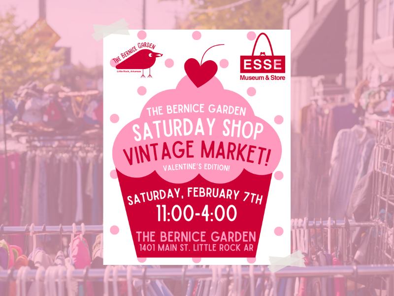 The Bernice Garden Saturday Shop returns with its first vintage market of the year, featuring a Valentine’s-themed lineup of 20+ vendors. Shoppers can browse vintage clothing and unique finds in the heart of downtown Little Rock during this festive outdoor market celebrating local style and creativity.